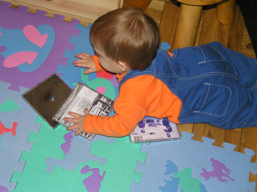 Keddenként járunk zenebölcsibe, Levi nagyon élvezi és én is; szerencsére nincs tömegnyomor, jó a hangulat, aranyosak a gyerkőcök és az anyukák is jó fejek, mindig gyorsan elrepül az idő. Mostanában Levi ha elkezdünk énekelni egyből táncolni kezd, nagyon aranyos ahogy rázza magát, néha még a ritmust is sikerül eltalálnia. Otthon meg megy a zenehallgatás, meg a CD-k lepakolása az állványról, előszeretettel dobálja le őket, aztán egyenként megízleli őket tokostul.