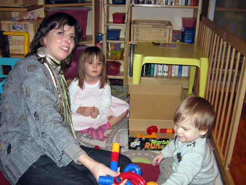 kaja után már Lénával is leült játszani, Lillával összeraktunk a golyóknak egy pályát, ami persze Levi folyton szétszedett, de azért csak elkészült és utána nagyon tetszett neki, ahogy a golyók végiggurulnak a pályán.