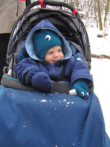 Igazi téli kirándulóidő volt, hatalmas tömeg volt mindenfelé, sokan jöttek szánkózni, síelni vagy csak sétálni, de mi egy párhuzamos úton mentünk a főúttal így nagyon nem is találkoztunk senkivel, míg a geoládát kerestük. Levinek nagyon tetszett az egész nyüzsi, a sok ember, meg a nagy fehérség, tátott szájjal nézte a fákat, már amennyire kilátott a sapka és az overall alól.