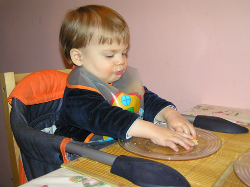 a vajas kenyérből jut mindenhova nem csak a szájába, tiszta vaj az arca és az ujjai is a vacsora végére.