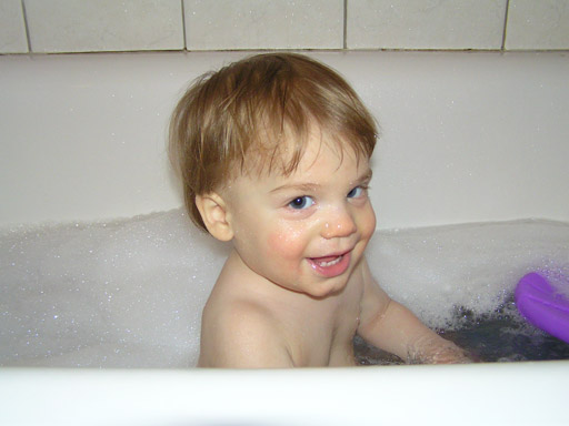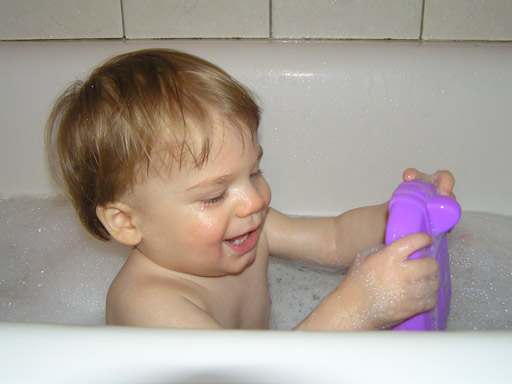 Már napközben is egyre többet álldogál kapaszkodás nélkül és egyre többször lépked is két lábon. A legújabb, hogy közben valamit visz az egyik kezében is. Este meg mikor hazajött Andris, az volt a játék, hogy ide-oda szaladgált köztem és Andris között, ha hívtuk, aztán már hívni se kellett, egyre nagyobb biztonsággal tette meg a lépéseket a méretes távolságon ami köztünk volt. Nagyon tetszett neki ez az ide-oda mászkálás, közben kacarászott és magyarázott ezerrel. Aztán jött az esti fürdés a nagy kádban és hogy annyira gyorsan ne hűljön ki, most a Neogranormonos habfürdőből tettem a vízbe, amit Amáliától kaptunk ajándékba. Szeretem mert nem szárítja a bőrét és hatalmas a habja. Levi először idegenkedett tőle, zavarta, hogy mi ez az izé a víz felszínén, így nem látja a játékait se. De aztán mikor megmutattam, hogy lehet a tenyerünkről lefújni a habot az nagyon tetszett neki és utána már nem zavarta annyira a hab, még az arca is tiszta hab lett a nagy játékban, ahogy csapkodta a vizet.