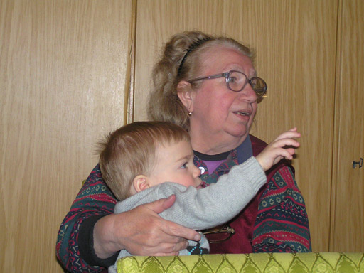 Levi itt éppen a Mamának mutatja hol van az óra a falon.