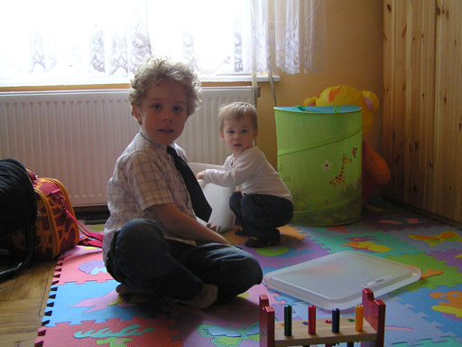Elmélyülten játszik a két Levi és Kriszti, Levi anyukája nálunk 2-án