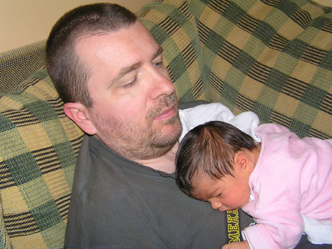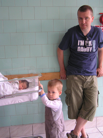 Ma este 10.05-kor megszületett kislányunk Izabella, aki egy 3 kilós gyönyörű fekete színű hajas baba, kicsi cseresznye ajkakkal, hosszú ujjakkal és lábakkal (na ezt nem tőlem örökölte:). Június 11. Ma behozta Andris Levit is a kórházba, hogy megmutassuk neki a hugit. Aztán mondta, hogy szeretné megsimogatni Ő is, úgyhogy Andris felemelte és megsimogatta a ruciját. Június 12. Ma töltjük az utolsó napunkat a kórházban, a vérnyomásom is nagyjából beállt és holnap délelőtt, ha a gyerekorvos is rendben találja Izát, akkor mehetünk végre haza a fiúkhoz. Június 13. Végre itthon vagyunk. Még kicsit kaotikus a rendszer, mit hogyan csinálunk, mi hogy lesz, hogy alakul a napirendünk, de majd kialakul minden. Tisó csinált nekünk finom ebédet, míg Anyunk a felpörgött Levit próbálta lekötni. Aztán délután átjött Kati mama is Tibivel, ők is megcsodálták Iza babát. Este nem kellett senkit elringatni, mindenki hulla fáradt volt. Június 17. Általában mikor reggel Levit lehozza Andris, akkor végez Iza is a reggeli szopizással, ilyenkor Levi is odabújik a nagy ágyba megsimogatja Izás és odabújik mellé és mondja, hogy Ő is alszik még. Nagyon édesek ilyenkor együtt. Június 20. A család etetése és főleg Iza babáé úgye az én feladatom, de büfiztetésben és közös ebéd utáni sziesztában Apa a verhetetlen. Június 23. Ma 2 hetes Izabella, hogy rohan az idő! Kezd kikerekedni, ahogy Judit védőnőnk is megjegyezte a szerdai látogatásán. Valóban ma már az esti mérlegelésen majdnem elérte a születési súlyát is Izi 3090 gramm. Kis vingonc, ha leteszem a hátára, előbb-utóbb az oldalára fordul és úgy alszik el. Vagy ha nem alszik akkor hosszasan szemléli a bohócot, amit még anno Levi kapott a Nagypapitól, de Izának is nagyon tetszik. Június 25. Kislányunk igazi éjszakai bagoly; napközben jóravaló csecsemőként csak eszik és alszik - néha még a szoptatás alatt is alszik - de este 7-8 felé felébred és nagy szemeivel tekinget a világra. |