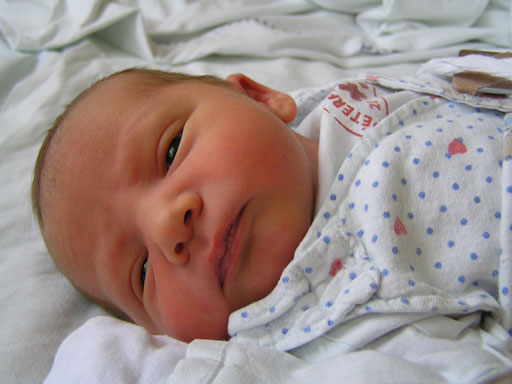 Ez is még a kórházban készült (az angol pólyán látszik is a kórház pecsétje) Levente a látogatók egybehangzó véleménye szerint rám hasonlított, legalábbis az orra, a kis keze és az álla tiszta anyja, de a nézése már most is Andriséra hajaz.