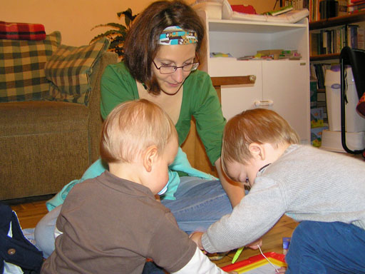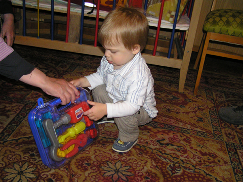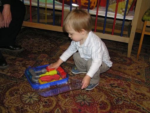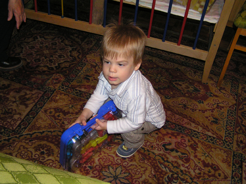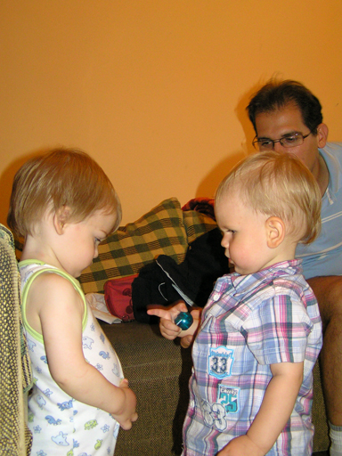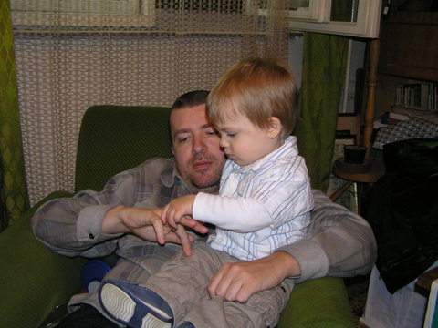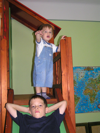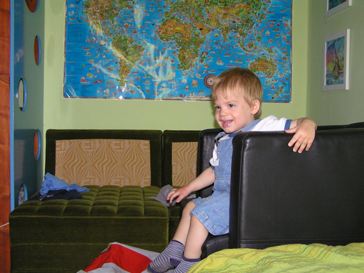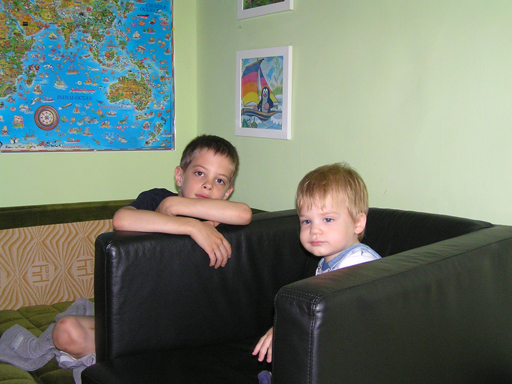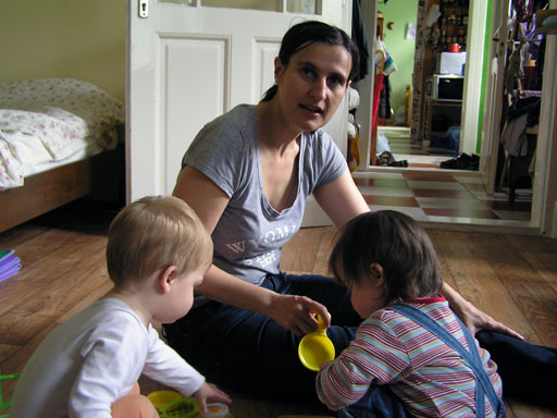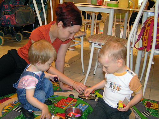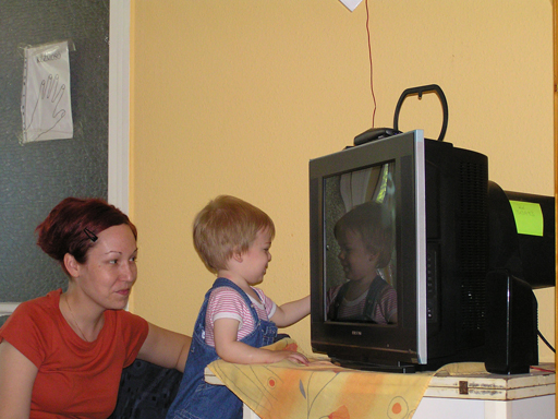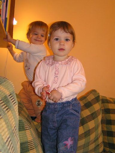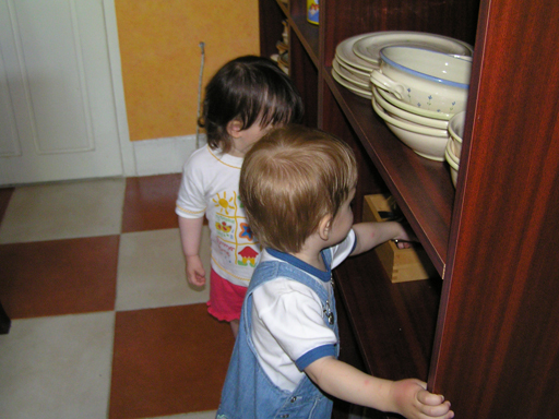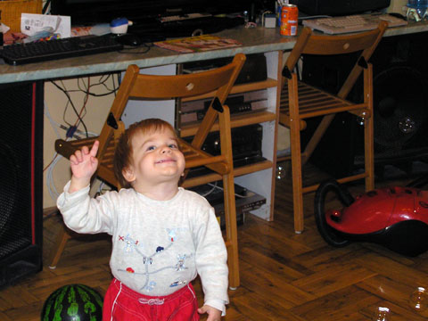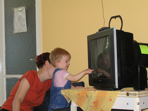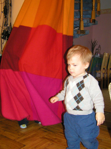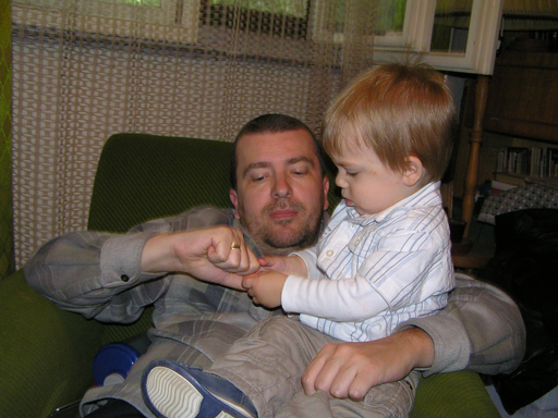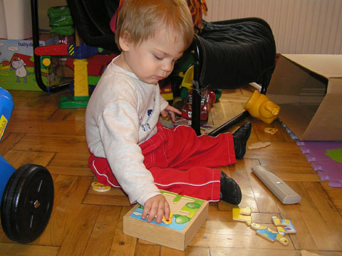 Ma délelőtt a Zenedében megismert Janka és Kismiki jött hozzánk látogatóba. Levi első körben nagyon védte a játékait, minden elvett Kismikitől, hiába mondtam neki, hogy csak játszik vele, nem veszi el tőle, bár nem hiszem, hogy nagyon értette volna mit magyarázok neki. Később már jól eljátszottak együtt is; sőt mikor Kismiki felvette a sapiját akkor Levi is kért egyet tőlem, amit Ő is felvett és abban mászkáltak együtt föl-le a lakásban. Majd következett a függönyös játék, ezen jókat kacarásztak, ahogy elbújtak egymás elől és cibálták a függönyt. A nagy függöny cibálásban elfáradva, megpihentek pár percig és közösen rajzoltak Janka segítségével. Június 3. Mivel még mindig nyoma se volt a nyárnak és a jó időnek, így megint benti játszós délutánt szerveztünk Krisztiékkel. A változatosság kedvéért most Ők jöttek át Levivel. Volt közös főzőcskézés és persze minden játékot előszedtek és kipróbáltak, úgyhogy pár perc alatt tele lett a szoba már alig fértünk el a földön a sok játéktól. aztán megjött Apa személyében a felmentő sereg és mindkét Levi rajta csüngött egy perc múlva, na meg persze a számítógéphez próbáltak odaférni Andris öléből. Mondtam is Andrisnak szokja a helyzetet, mert ilyen amikor 2 gyereke van az embernek :) Ma délelőtt szerencsére nem esett így sikeresen eljutottunk Levivel Erikához az szokásos pénteki ÖTYÉ-re. Míg Éváék megérkeztek Levi Kisandris szobájában ütötte el az időt, míg mi Erikával beszélgettünk. Kis anyai segítséggel felmászott a várba az oldalsó mászókán majd lecsúszott ülve vagy hason, ahogy éppen kijött a lépés. Aztán ezt egy idő múlva megunta és inkább az evőeszközöket pakolta a konyhában, majd megpróbálta bekapcsolni a tévét és a számítógépet, ezt nem hagytuk, így kénytelen volt a IP telefonnal vigasztalódni. Aztán megjöttek Éváék is és így Liloval együtt ment a telefonálás és rohangálás föl-le, néha megpihentek pár másodperc erejéig, aztán folytatódott a felfedezés és pakolászás. Átvittük Levi babakonyháját, hogy legyen mivel játszani a gyerkőcöknek. Lilonak is megmutattuk, nagy sikert arattak a szétvágható élelmiszerek, volt közös főzőcske is Éva segédletével. Aztán persze volt igazi tízórai is, kis zöldalma, gyümölcstea és egy kis perec. Június 5. Délután családilag Tibivel együtt kivonultunk a Margitszigetre egy kis sétára, aznap volt a Sportsziget rendezvény is. Ez Levit még nem nagyon érdekelte, de így is akadt elég látnivaló: megnéztük a hajókat a Dunán, mászkáltunk a kolostor romoknál és ellátogattunk a szigeten lévő kis állatkertbe is, ahol Levi mint egy igazi "kacsafan", leragadt a kacsáknál és őket nézte ottlétünk alatt végig, hiába riszálták magukat a szabadon mászkáló fácánok és gólyák, rájuk se nézett. Június 8. Ma délelőtt a Madarász utcai kardiológiai szűrésen voltunk. Levit eléggé megviselte a vizsgálat; nagyon nem tetszett neki, hogy fel kell feküdnie a vizsgálóasztalra és még nyugton is kell maradnia, hogy megnézze a szívhangját a doktornéni. Aztán ez még nem volt elég még ráaggatnak egy csomó hideg bigyót az EKG-hoz, ez a kettő így együtt nála nem megy, volt nagy sírás-rívás. De ahogy elengedte a doktornéni, a sírás is abba maradt rögtön. Június 16. Ma a változatosság kedvéért megint esik reggel óta, Levi ennek megfelelően pörög ezerrel. Aztán egy spontán chatelés után meglátogatnak minket Líviáék Rózával, így legalább nem unatkoztunk délelőtt. Aztán véget ért az idill és beindultak a kölyök: volt közös lámpa kapcsolgatás, azaz először Levi megmutatta, hogy kell felmászni a kanapéra, hogy elérje a lámpát, aztán Róza is leutánozta hibátlanul a mutatványt.