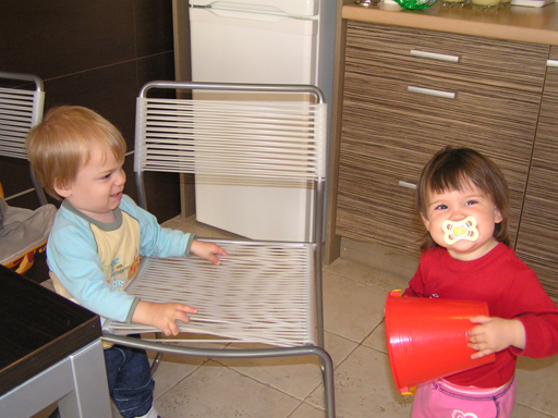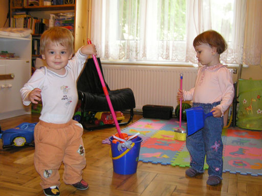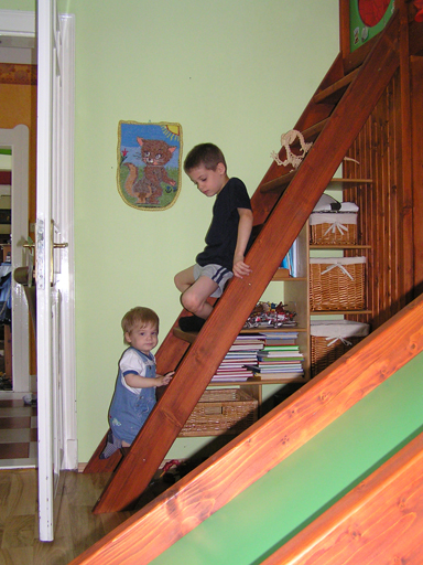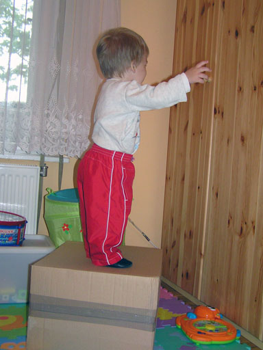 aztán munkamegosztással kitakarítottak közösen, Róza felsöpört, Levi meg felmosott a szobában Június 18. Levi mióta rájött, hogyan tud felmászni a székre, azóta megállás nélkül mászik fel mindenre és mindenhova. Ha már a székre felmászott, akkor nincs megállás; tegnap az ebédlő asztalról szedtem le, ma a könyvespolcra próbált felmászni. Ha felmászott a székre, nincsenek biztonságban a kábelek, a távirányítók és persze a telefon se. Imádja ki-bepakolni a tartójába, mert akkor ad egy csilingelő hangot is, ami nagyon tetszik Levinek.