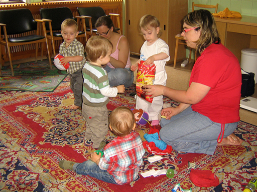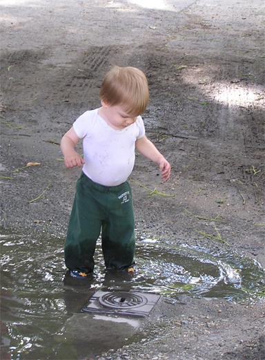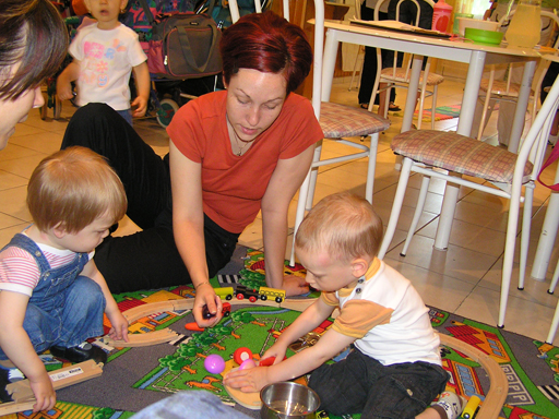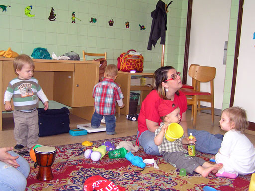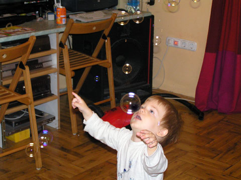 Már egyre ügyesebben öltözteti fel a fa kirakós macit, tudja hova kell tenni a maci fejét, a nadrágját vagy a pulcsiját. Persze néha nincs türelme hozzá és inkább csak kipakolja a fa dobozból a darabokat és nekem adogatja, hogy rakjam a helyére. végül levezetésképpen egy kis ugrálás a bubik után, a buborékfújó örök kedvenc nálunk is. Változó, hogy próbálja őket elkapni vagy csak nézi, ahogy szétpukkadnak a parkettán. Június 20. - Levi a mászó bajnok Június 21. Az első baba mama klub Reggel izgatottan ébredtem, mert ma volt az első baba mama klubunk, amit szerveztem és féltem, hogy magányosan fogunk Levivel kettesben ücsörögni a rossz idő miatt. Sok minden szóba került a szobatisztaságtól a játszóterekig, ki mit ad enni, hol érdemes vásárolni és persze ki mit csinál még a gyerek mellett a nemlétező szabadidejében. Nagyon egy hullámhosszon voltunk, úgyhogy egy nagy közös terv is kibontakozott a beszélgetés alatt, de erről majd később bővebben :) Levi Lilivel az ablakban Levi, Kismiki, Móni ölében Benő és Lili Június 23. - Dagonya Előző nap a változatosság kedvéért megint esett, így kint az utcán hatalmas tócsák keletkeztek, amibe persze Levi az első adandó alkalommal belegázolt térdig. Nagyon tetszett neki a dagonyázás, csapkodta a vízben a lábacskáit és futkosott egyik tócsától a másikig és persze mindet kipróbálta. Június 24. Ma Évánál tartottuk az ÖTYÉ-t, míg mi beszélgettünk a lányokkal, addig Levi és Lilo tologatták a széket, majd Levi felmászott rá, aztán rájött, hogy onnan már csak egy ugrás az asztal és megpróbálta megkaparintani az asztalon lévő rágcsákat is. Ezt persze nem engedtem meg neki, de helyette kaptak egy kis babapiskótát, ami semmi perc alatt elfogyott, pedig több darabra törtem nekik. De találtak más elfoglaltságot előkapták a homokozó vödröt és azzal rohangáltak felváltva. Aztán kiszedték az összes zenélő játékot és volt nagy zene-bona, ez Marcinak is nagyon tetszett, Erika kisfiának. Este átjött Nagypapi Andrisnak segíteni a medence tetejét összerakni, aztán utána vacsiztunk a kertben, míg belőlünk a szúnyogok vacsiztak. Levi persze aktívan részt vett az összeszerelésben, végig ott állt és nézte mit csinál Apa és a Nagypapi és közben lelkesen kommentálta nekem az eseményeket. Június 27. Mamáéknál Alvás után meglátogattuk Mamáékat Budatétényben, ahol Levi névnapját is megtartottuk. Levi kapott egy kis locsolókanát és egy barkács készletet a Mamáéktól, amit persze rögtön ki is bontott a Mama segítségével. A sikeres kinyitás után rögtön tesztelte is a szerszámokat. Levi most nem sokat evett, szerintem úgy teletette magát ebédkor, hogy nem volt még hely a pociban, de azért a Mama féle sajtosból lecsúszott pár falat. Kaja után kimentek a kertbe a Mamával, megnézték a virágokat és Pepita kutyát. Aztán a szobában meglocsolta az új kannájával a virágokat. A nagy rohangálásban elfáradt és felkéredzkedett Apa ölébe kicsit megpihenni, majd megszemlélte Apa jegygyűrűjét is, amit megpróbált lehúzni Apa ujjáról, de nem sikerült, így hamar megunta az ücsörgést és útra kélt. Levinek nagyon tetszenek a szemüvegek, így a Mamáé se kerülte el sorsát, Levi alaposan szemügyre vette, kinyitotta becsukta a szárait és megpróbálta fel is tenni az orrára, de kicsit nagy volt rá. Június 28. Ma délelőtt újpesti mami kluboztunk, beszámolót itt olvashatsz a mai találkozóról. Június 29. Egy anyuka mesélte a játszótéren, hogy a Rózsa utca elején van egy baba-mama klub, kedenként, vicces mert szerintem hetente elmentem előtte, de eddig sose tűnt fel. Úgyhogy ma délelőtt Krisztiékkel karöltve ellátogattunk a Kanga kluba, ami a Gyermekjóléti Központ keretein belül működik. Levinek építettem egy vasút pályát, amit aztán Zsuzsival ki is próbált a két Levi, de sokkal izgibb volt főzőcskézni és vagdosni a tépőzáras fa zöldségeket és kevergetni a játék lábost. Levi mikor felfedezte, hogy van egy tévé is a teremben, nagyon megindult, hogy Ő majd bekapcsolja, de nem engedtem neki. Ezt kicsit zokon vette, de Istvántól kapott egy használaton kívüli távirányítót ami enyhítette felháborodottságát. Aztán Zsuzsi felügyelete mellett Levi közelebbről is szemügyre vette a tévét, amit bár nem tudott bekapcsolni, de látta a tükörképét a monitorban és ez is nagyon érdekes volt. Június 30. Délelőtt Erikánál tartottuk az ÖTYÉ-t, Éváék is oda jöttek Liloval. Kisandris is otthon volt, és nagyon aranyos volt, ahogy Lilot és Levit felügyelte, irányította. Levi teljesen odavolt Andrisért, persze mindenben utánozni akarta, ha Andris felmászott a lépcsőn vagy a csúszdán Ő is próbált utána mászni, több kevesebb sikerrel. aztán ha Andris megpihent a fotelben Levi is felmászott oda és pár másodpercig Ő is nyugton maradt. persze Liloval is megvolt a szokásos konyhai evőeszközök kipakolása a polcról és nem maradt el a hűtőmágnes pakolás sem a hűtőről. Estefelé Jankáék jöttek át hozzánk, Kismiki már otthonosan mozgott nálunk és szerencsére Levi se féltékenykedett a játékaira. Jól eljátszottak együtt, igaz néha volt egy kis harc, hogy melyik színű karikát ki fogja meg. Cukik voltak, ahogy komoly arccal vizsgálják a kék golyót. aztán a következő pillanatban már nagy vigyorral rohangáltak a lakásban ide-oda. Persze nem buli a buli üres hassal, úgyhogy a végén volt közös frissen sült kenyér rágcsálás és bodza szörp ivás is. A végére totál elfáradtak, azt hiszem ma se kell őket altatni.