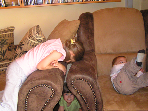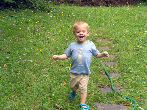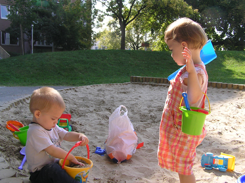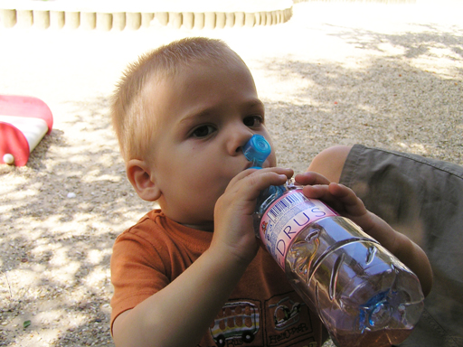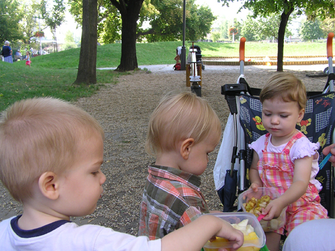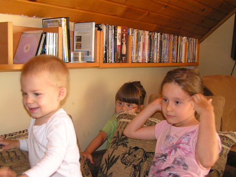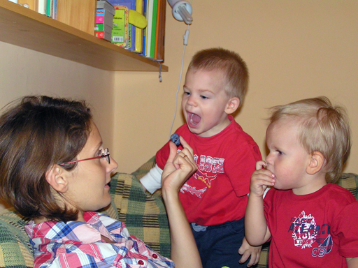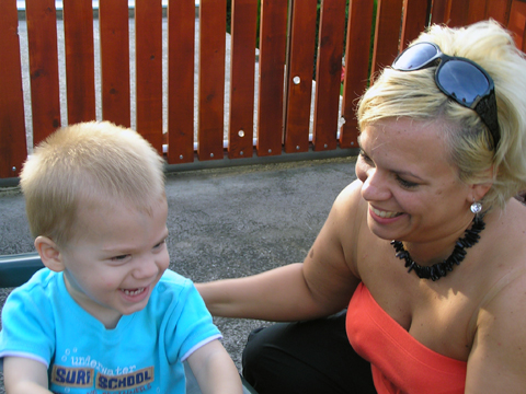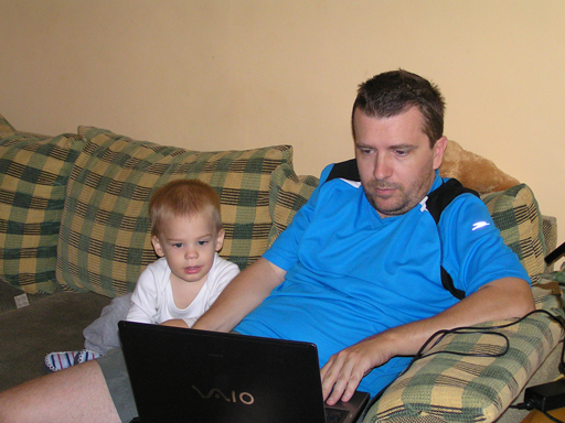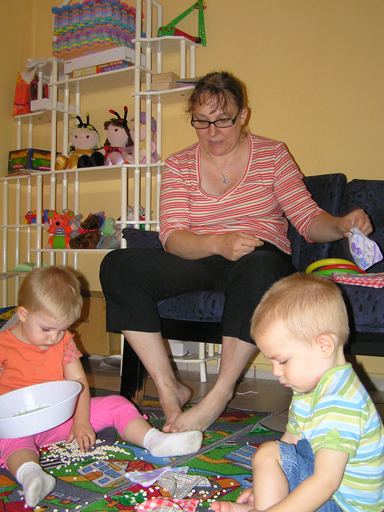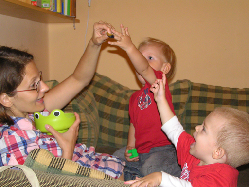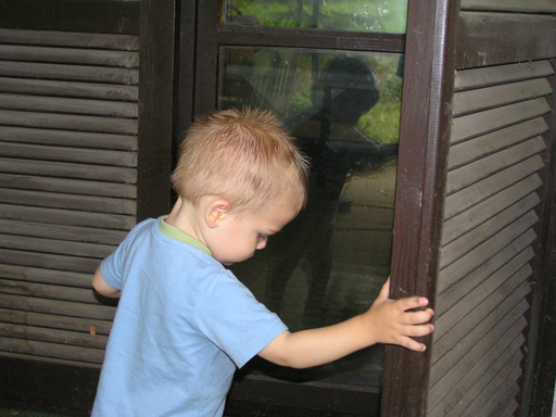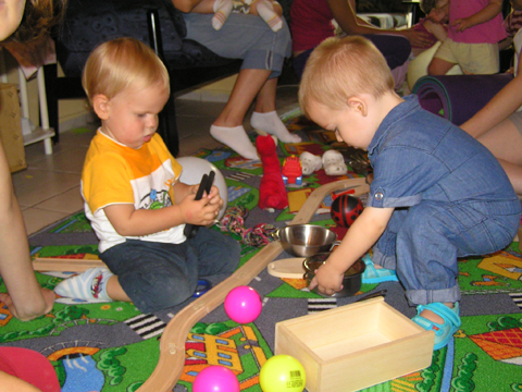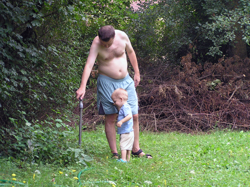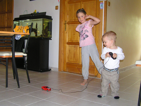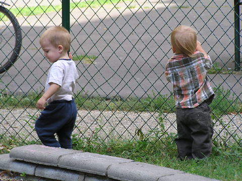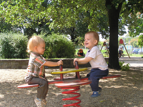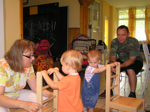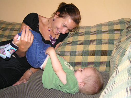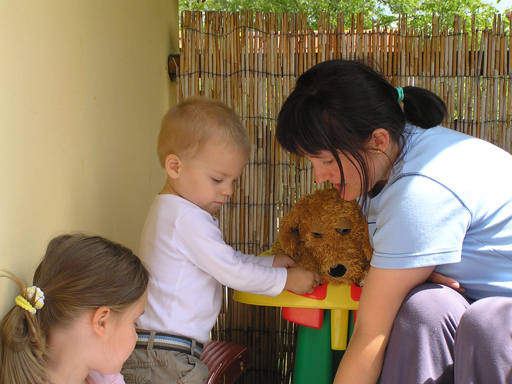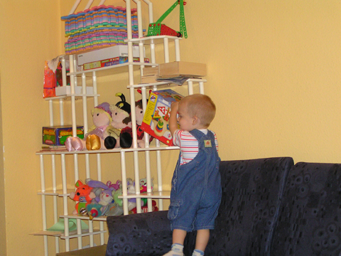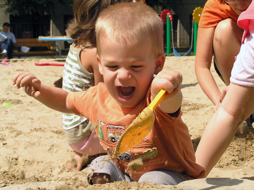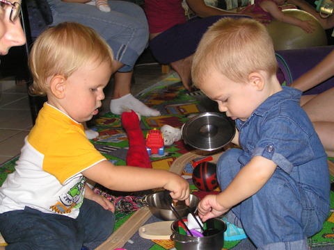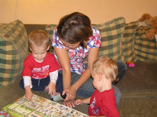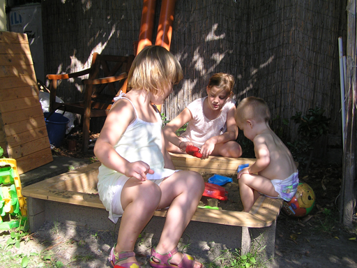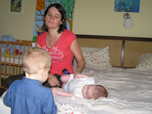 Augusztus 8. Ma délelőtt Lacáékat látogattuk meg, korán mentünk ott ebédeltünk és úgy volt, hogy Levi alszik is majd egyet ebéd után, amiből persze semmi nem lett. A lányok nagyon izgatottan várták Levit, készültek neki játékokkal, finom vakondtúrás tortával, amiből Levi tisztes adagot be is vágott. Ebéd előtt volt nagy közös kergetőzés és hancurozás a nagyszobában az ülőgarnitúrán. A finom ebéd után, míg a lányok is pihentek egy kicsit, megpróbáltam Levit is lefektetni, de gyorsan kudarcot vallott ez a próbálkozásom; bár kicsit álmos volt,de nem volt hajlandó elaludni, gondolom ennyi izgalom és esemény mellett nem volt túl sok kedve aludni. Délutánra egész jó idő lett, kisütött még a nap is, így Levi a lányokkal és Évivel kiment az erkélyre piknikezni. a közös ücsörgés után volt közös takarítás is, itt éppen Levi tart bemutatót a lányoknak Augusztus 10. Kanga klub Délelőtt elsétáltunk a Kanga klubba Levivel. Zsuzsi és István ma nem volt, de Hajni egyedül is állta a sarat és szuper játékokat játszottunk. Mire mi megérkeztünk Almáék és Petráék már ott voltak, Levi segített letenni a másik játszószőnyeget is, hogy kényelmesen elférjünk mind, aztán persze mindenáron össze akarta tekerni újra. Hajni megmutatta nekik a babzsákot, aminek az lett a vége, hogy kiszórták Petrával az összes babot és utána próbáltuk összeszedni. A babos buli után jött a főzöcskézés, Levi kimerte a lábosba az összes fazöldséget és gyümölcsöt, majd lelkesen kevergette a lábosban őket. Készül a sín a vonatoknak, Levi is segített az építésben. Mikor kész lett Petrával tologatták rajta a vonatokat. Levi brüm-brüm hangeffektekkel kísérte az eseményt, de sikerült neki megmagyaráznom, hogy ez vonat, nem autó és ez inkább sihuhu. Lassan közeledett az ebéd idő, de volt még egy kis idő Levi kedvencére az alagutas játékra, ezt nagyon szereti, mindig kacag, mikor valaki bebújik az alagutba majd kibukkan belőle. Augusztus 11. Délelőtt Jankáékkal kimentünk a játszótérre. Levi egyből mutatta a kukákat vagy ahogy Ő hívja a bumm-bumm-ot. Még nem sikerült megfejtenem honnan ered ez az elnevezés, de aranyos, ahogy mondja. Felmérte a terepet és megmutatta nekem szerencsére most csak messziről, hogy hol vannak a kukák. Aztán megjöttek Jankáék is Kismikivel. Volt csúszdázás bár Levi leginkább csak nézte, ahogy Kismiki lecsúszik. és persze a közös falatozás se maradt el, aminek én annyira nem örültem, mert ki fog így rendesen ebédelni, ha tele eszi magát rágcsával. Míg kint voltunk azalatt bedöntött 3 dl almalevet is, bár szerintem nem is szomjas volt, hanem tetszett neki, hogy ebből a kupakos palackból ihat. De szavam nem lehet, mert azért a kelkáposztafőzelékből is egy nagy adagot megevett ebédre. A nagy falatozás után jött a homokozás, ki kézzel, ki kannával, amit éppen talált kéznél. Janka homok gombócokat gyúrt a gyerekeknek, amit aztán eldobtak és nagyon tetszett nekik, hogy szétesik, ahogy lepuffan a homokba. Levi közben kézzel majd lapáttal dobálta ki a homokozóból a homokot, míg nem sikerült neki megmagyaráznom, hogy inkább a homokozóba dobálja a homokot, ne ki. Később talált egy vödröt és egy lapátot amivel lelkesen lapátolta a homokot a vödörben, majd kiöntötte belőle az egészet és kezdte újra a lapátolást. Augusztus 12. Levi nagy kedvence ez a farm ház és persze a hozzá tartozó traktor, állatok és kockák. A traktorba ki-be pakolja a kockákat és az állatokat és hangkísérettel tologatja a házba ki-be. Persze mikor rálép az ember a kis kockákra, akkor nem tűnik annyira jó játéknak már. Délelőtt Líviáékkal kilátogattunk a játszótérre, jó rég találkoztunk már, úgyhogy volt miről beszélgetünk míg a gyerkőcök játszottak. Kipróbálták a mérleghintát, nagyon vagányan csücsültek rajta, aztán Levi hamar megunta és lepattant róla. Levi itt is felmérte az összes kukát, de szerencsére most egyiket se fogta meg, csak megmutatta, merre vannak. Felmérte az egész játszóteret, megrázta itt-ott a kerítést és a kaput, majd felmászott az egyik padra és onnan szemlélte a többieket. Aztán mikor meglátta, hogy Róza eszik és iszik, neki is rögtön eszébe jutott az evés-ivás. Megkapta a maga itókáját amit meg is ivott az utolsó cseppig, majd Lívia adott neki Róza banánjából, amit szintén jóízűen elfogyasztott. Még jó, hogy itthon rá se nézz a banánra, de persze, ha Lívia adja az sokkal finomabb. Délután a kertben a szomszéd lánykákkal Rozival és Dorkával játszott Levi. Volt nagy közös homokozás, alig fértek el a sok homokozó játéktól, de azért megoldották és kapott Levi homok fagyit is. és Rozi épített egy nagy homokvárat is Levinek. Dorkával próbálják pörgésre bírni a szél forgót Augusztus 13. Míg én az ebédet csináltam, Levi a szobában építőkockázott. Napról napra ügyesebb, most már nem csak egymásra pakolja toronyként az egyforma méretűeket mint az elején, hanem alkot is a maga módján. Levivel ma együtt kukoricáztunk, mert uzsira főtt kukoricát kapott. Csak néztem milyen profi technikája van a szemek lerágcsálására. Délután a fiúk biciklizni mentek, azaz Andris tekert, Levi pedig kommentálta az eseményeket: minden huppanónál közölte, hogy hoppá. Most már hagyja, hogy a sisakot is rátegyünk és persze a végén nem akar kiszállni a biciklis ülésből. Augusztus 15. Délután Liláékhoz voltunk hivatalosak egy bográcsos partyra Solymárra. Szerencsére mire kiértünk az eső is elállt és a nap is kisütött. Lillával előkészítettük a babgulyáshoz az alapanyagokat, Léna segített a tűzhöz cipelésben, míg Levi leginkább csak kóstolgatott. Majd később felfedezte, hogy milyen jó buli, ha az ajtót és a