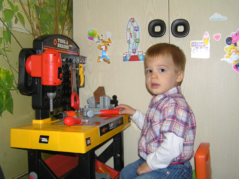 Alvás után átmentünk Krisztiékhez játszani Levivel. Levinek kellett egy kis idő míg feloldódott, utána már Ő is ezerrel rohangált, huncutkodott, mint a másik Levi. A gyerekszobában 2 perc alatt kipakoltak minden mozdítható játékot. Levinek nagy kedvence a barkács sarok, mindig játszik vele, ahogy most is.