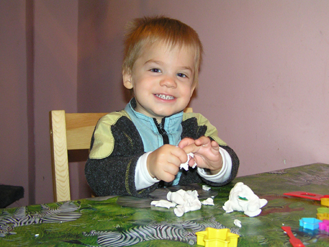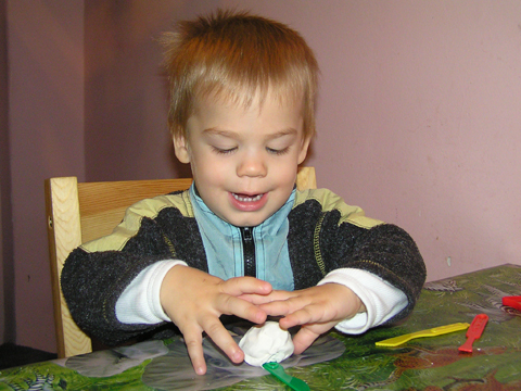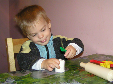 Délután, miután Levi felébred az alvásból elővettem neki a Play-Doh gyurmákat és a hozzá tartozó sok-sok formát, kést és sodrófát. Levi végre kedvére nyiszálhatta a gyurmát a késekkel, mikor megunta kilapította a sodrófával és belenyomkodta a formákat, csillagot, házat, emberkét.