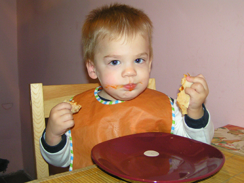 Ebédre sütöttem palacsintát Mici néni házi baracklekvárjával töltöttem és isteni lett, sokkal jobban csúszott nekem is, mint a túrós vagy a csokis. Levi szó szerint két kézzel tömte magába. Megevett kettőt és utána nagyon morcos lett, mikor nem adtam neki többet. Október 10.