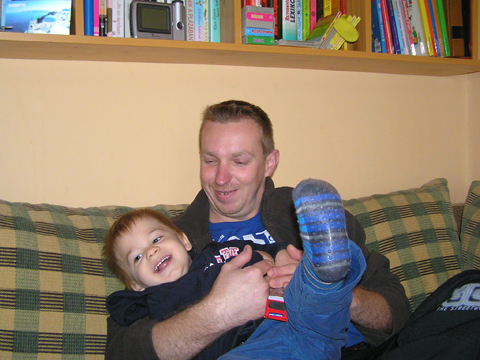Ma mozgalmas napunk volt, reggel mielőtt Andrisék elutaztak Levi nagyot hancurozott nagybácsijával, Tibivel a kanapén és persze közben egy percre se engedte el kedvenc buszát a kezéből.