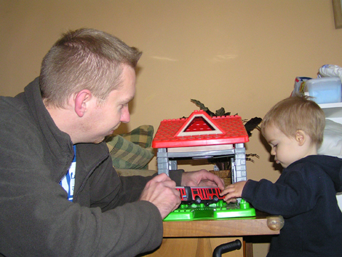 Aztán előkerültek az autók, a rajztábla meg a zenélő vonat, ami nagyon tetszett Levinek, ahogy pörgött és forgott miközben zenélt rendületlenül.