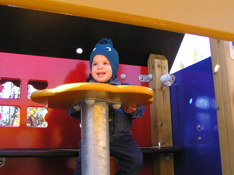 Délelőtt kimentünk egy újonnan felfedezett játszótérre, amit előző nap fedeztünk fel a tecsóból hazafelé. Volt nagy mászóka a tetején kis házzal, asztallal, paddal, ahonnan Levit ki se lehetett robbantani, annyira tetszett neki.