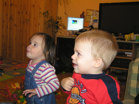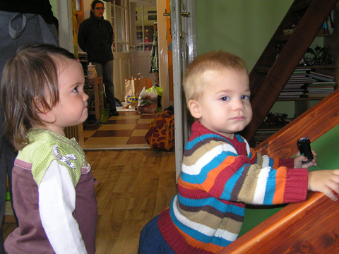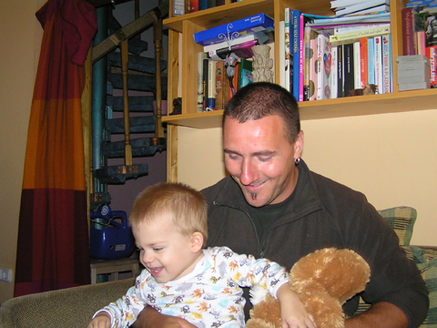 Ma délelőtt Éváékkal Erika névnapját ünnepeltük, a jól kitervelt parfé torta ötletét a szuper 15 fokos időjárás keresztül húzta, így végül gyümölcshab és krumplis pogácsa volt az ünnepi kaja. Meglepetés vendég is volt, Csilla személyében, Erika meg is lepődött kellő mértékben, úgyhogy jól sikerült a meglepetés. Pár perc múlva bejött Lilo közösen próbáltak felmászni a csúszdára, nem sok sikerrel, aztán Lilo talált egy kislabdát és azt dobálták egymásnak vagy ahogy sikerült. a nagy mászkálásban Levi megtalálta Marci játékai között a kejfel nyuszit, amit anno imádott, meg is mutatta Lilonak, aztán talált egy szövegkiemelőt, amit elvettem tőle, de most annyira nem vette zokon. Volt főzőcskézés is, ma Csilla volt a sztár Levi teljesen kisajátította; fogta a kezét és húzta maga után, hogy nyissa ki neki az ajtót vagy vegye le neki azt, amit nem ért el. Szeptember 2. Ma előkerültek a nagy dobozból a fajátékok, Levi végre szakszerűen ütötte a kalapáccsal a rudakat. Eddig az volt a játék hogy kiszedette velünk a rudakat és Ő utána visszadugdosta őket kézzel. Délután Csilláék ugrottak be hozzánk, Levi nagyon fel volt pörögve, ezerrel produkálta magát. Bár Bélát most látta először egyből összebarátkozott vele és pár perc múlva már együtt hancúroztak nagy vidáman. Délelőtt Rita jött ki hozzánk. Levi elég nyűgi volt eleinte, de aztán megbékélt és míg főztem jól eljátszott. Levi megmutatta Ritának a Kisvakondos könyvét. Majd a Böngészőben az összes általa ismert állatot, járművet és persze a kukákat is. Szeptember 4. Délután Kisandris szülinapjára voltunk hivatalosak családostul. Levi eleinte félénk volt. Felmászott az ölembe és onnan szemlélte a sok vendéget, aki járt kelt a lakásban. De aztán meglátta, hogy van kaja is és egyből otthon érezte magát. Bement a szobába és kiszolgálta magát sütivel és pogácsával. Szeptember 5.