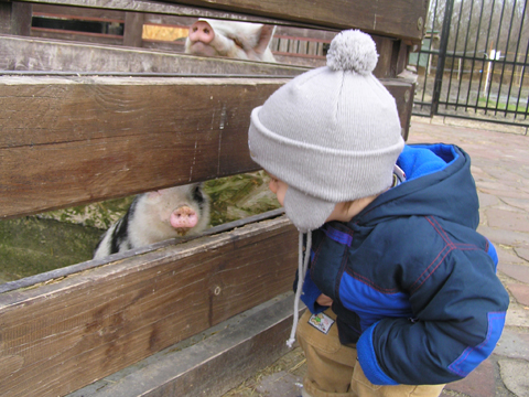 Levit most leginkább a malacok érdekelték. Szerfelett tetszett neki, ahogy a kismalac túrja a földet az orrával.