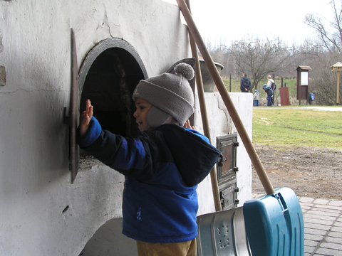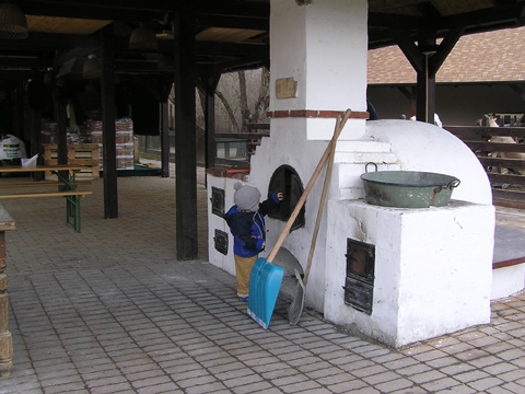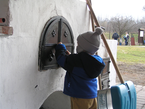 A legújabb felfedezése az udvaron álló kemence, ami rendezvények alkalmával működik is. Most csak Levi hozta működésbe az ajtókat. Ki-be csukta őket, eltolta rajtuk a reteszt majd visszatolta.