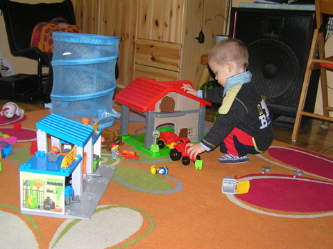 Január 30. Még mindig nagy kedvenc az abrick játék, anyai segítséggel felépíti a házakat és mehet a játék, legtöbbször igazi fiúként az autókat tologatja ki-be az épületekbe és persze tornyot is épít a kockákból.