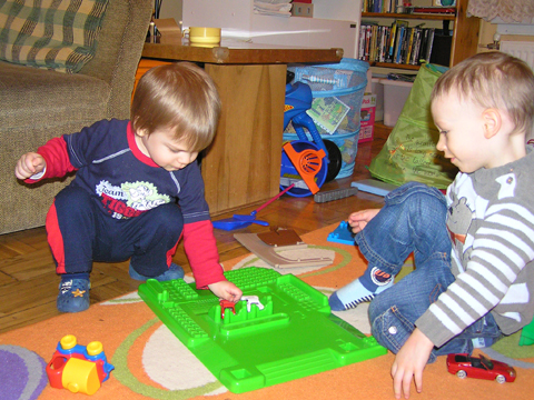 Délután Krisztiék látogattak meg minket, míg mi teáztunk és csevegtünk, a srácok nagy egyetértésben házat építettek és autóztak.