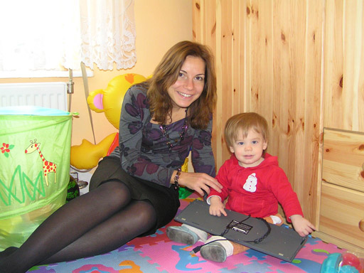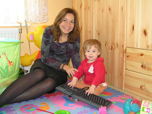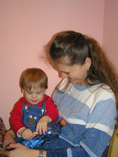 Az év első képein Levi Gyöngyi ölében csücsül az ebédlőben nálunk az elmaradhatatlan ásványvizes palackkal 2010. január 2-án.
