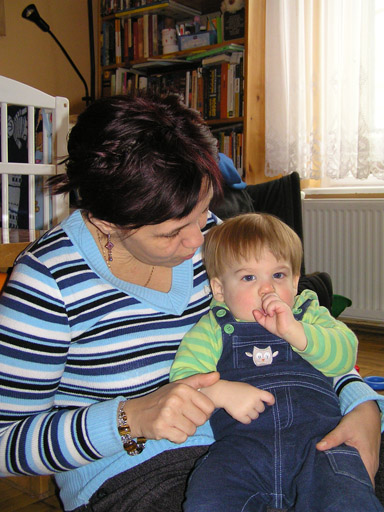 Levi Rita barátnőm ölében január 22-én, Levi alvás előtt volt, azért ez az álmos fej és az ujjszopás