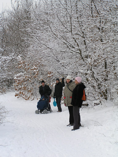 Január 23-án a Normafánál kirándultunk barátainkkal. A képen balról jobbra: Andris Levivel, Attila, Erika és Rita a csodaszép havas háttér előtt.