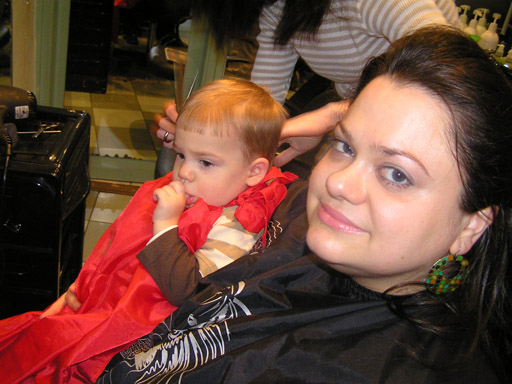 Levi Gáborkával 23-án, Nórinál a fodrásznál, ahol Levi első igazi hajvágása volt
