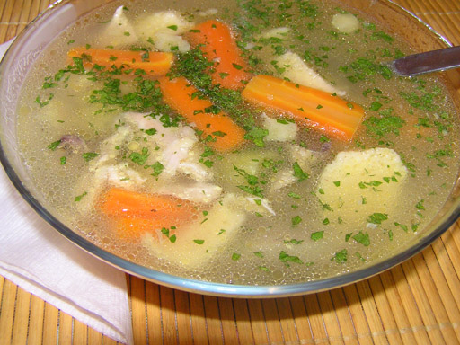 A húsleves az egyik legegyszerűbben elkészíthető leves, mi is nagyon szeretjük főleg amikor hidegebbre fordul az idő, nincs jobb egy tányér forró húslevesnél. Persze ahány ház annyi recept, mindenkinek megvan a maga titkos húsleves receptje. Íme az enyém. Hozzávalók: 1-1,5 kg bontott csirke, 3-4 szál sárgarépa, 1 fehérrépa, 1 darab zeller (vagy 1 szál zeller zöld) 1 darab karalábé, 1 kisebb fej vöröshagyma, 3 gerezd fokhagyma, 1 kisebb krumpli, 10 dkg pucolt zöldborsó, só, pár szem egész bors, őrölt szerecsendió, apróra vágott petrezselyem, 1 tojás, búzadara, vega-mix. Az előkészített, megmosott csirkét kisebb darabokra vágjuk és hideg vízben, kis sóval, borssal feltesszük főni. (Én a combokat és a fél mellet nem teszem bele, azt félreteszem más ételekhez:) Ha felforrt leszedhetjük a habját (én nem szoktam) és tegyük bele a megpucolt fokhagyma gerezdeket is és kis lángon főzzük, míg félig megpuhult a hús (kb. 40 perc). Tipp: a végén megszórhatjuk frissen apróra vágott petrezselyemzölddel. A maradék húslevest felhasználhatjuk később alaplének például krémlevesekhez.