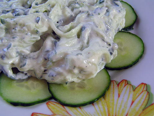 Vacsira vagy vendégvárónak is kitűnő friss házikenyérrel. Annyira finom, hogy sose bírok belőle eleget csinálni, sose marad belőle még hírmondó se. Hozzávalók: 6 db tojás, 1-2 evőkanál margarin, 1 kis fej vöröshagyma, 1 evőkanál tejföl, 1 kávéskanál mustár, só, fehérbors, petrezselyem. A keményre főzött tojásokat még langyosan megpucoljuk és tojásszeletelővel összeaprítjuk. Hozzáadjuk az összevágott vöröshagymát, a tejfölt, a margarint, a mustárt, a fűszereket és az apróra vágott petrezselymet. Összekeverjük majd az egészet egy botmixerre krémesítjük. Hűtőbe tesszük és pár órát pihentetjük, hogy jól összeérjenek az ízek. Tipp: csinálhatjuk dijoni mustárral is, akkor kicsit pikánsabb és erősebb lesz az íze. A Tzatziki salátát a görögök előételként fogyasztják. Én ebédre általában sült húsokhoz vagy vacsira pirítóssal szoktam enni, így is úgy is isteni nyári eledel. További receptek hamarosan: