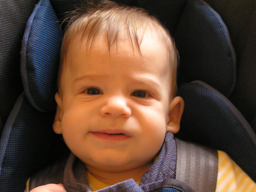 Ma léptünk be az 5. hónapba. Sok minden történt velünk az elmúlt pár hétben. Voltunk többször is kirándulni barátokkal a tavaszi napsütésben, ezeket hol átaludta, hol morcosan hunyorgott, mikor a szemébe sütött a nap (olyan, mint az Apukája, nem szereti a napot) vagy csendben nézelődött, ismerkedett a természettel és persze méltósággal viselte, hogy rázkódik alatta a babakocsi a göröngyös utakon. A fürdést még mindig imádja, persze még ilyenkor se veszik ki a szájából az ujját, néha meg annyira csapkodja a vizet a lábával, hogy nekünk is kijut a vízből.