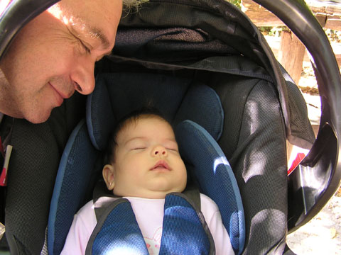 Délelőtt Nagypapival együtt kirándultunk egyet a Budakeszi Vadasparkba. Izi odafelé még nézelődött a kocsiban, majd a autó monoton zaja elringatta. Miután megérkeztünk csak áttettük a babakocsira a hordozót akkor felébredt, kicsit nézelődött, élvezte, ahogy ráz a babakocsi a feneke alatt újfent elaludt.