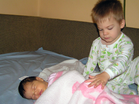 10-én Andris altatja a gyerkőcöket, nem sok sikerrel (a gyerkőcök szeme nyitva, Andris meg mindjárt alszik a képen :)