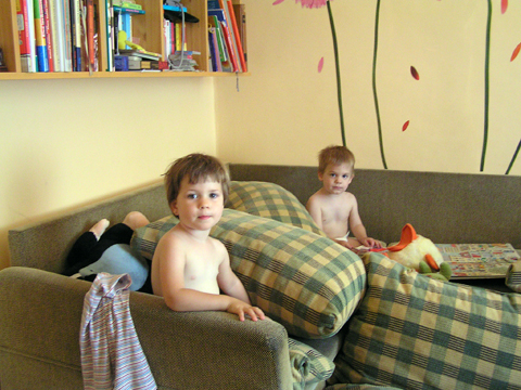 a kerti pancsolás után még volt energiájuk a nagyszobában is "rendet rakni"