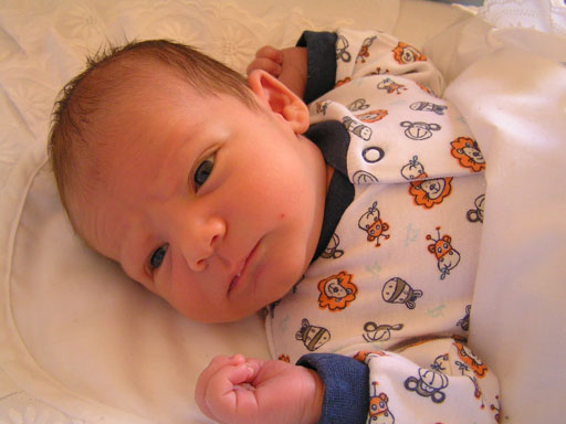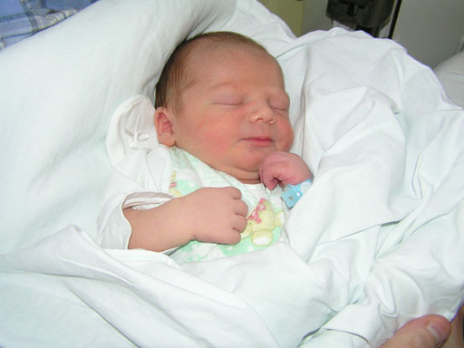Ez is még a kórházban készült (az angol pólyán látszik is a kórház pecsétje) Levente a látogatók egybehangzó véleménye szerint rám hasonlított, legalábbis az orra, a kis keze és az álla tiszta anyja, de a nézése már most is Andriséra hajaz.