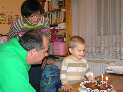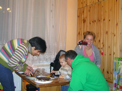 Igazi családi összmunka látható a képen. Nagymama a tortát vágja fel, Levi éppen kóstolja a maga szeletét, Sándor vicces kommentjein nevet éppen az operatőr, azaz Tisó, én meg fotózom őket :)