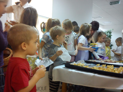 Ma az oviban vásár volt. Minden csoport saját készítésű kis termékeket vagy sütiket gyártott, amit 1 fabatkáért meg lehetett vásárolni a csoportszobák előtt felállított standokon. Ezek a kedvenceim Leviék csoportjából.