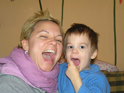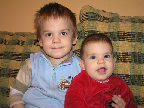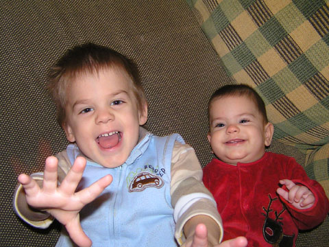 Január 28. Levi nagy csibész, minden bolondságban benne van; itt éppen Tisóval azt játsszák, hogy ők oroszlánok és éppen mérgesen kiabálnak.