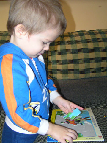Levi nagy kedvencei a kirakók, főleg a vonatos és kukásautós példányok a kedvencei, de néha előveszi ezt a Kisvakondos kirakót is, amit még Egéréktől örököltünk.