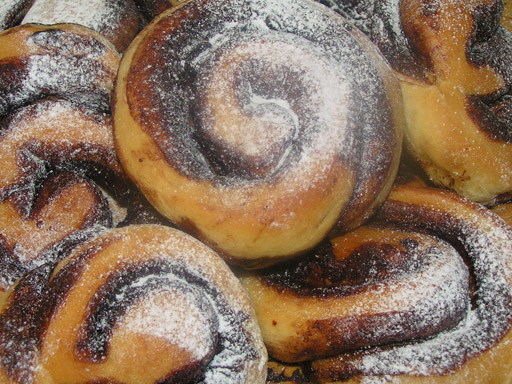 Hozzávalók: 50 dkg finomliszt, 3,5 dl tej, 10 dkg margarin, 2,5 dkg élesztő, 1 tojássárgája, 13 evőkanál kristálycukor, 1 kávés kanál vanília aroma, 1 kávéskanál só, 2 púpos evőkanál kakaópor, 1 kávéskanál fahéj, 1 evőkanál olaj.