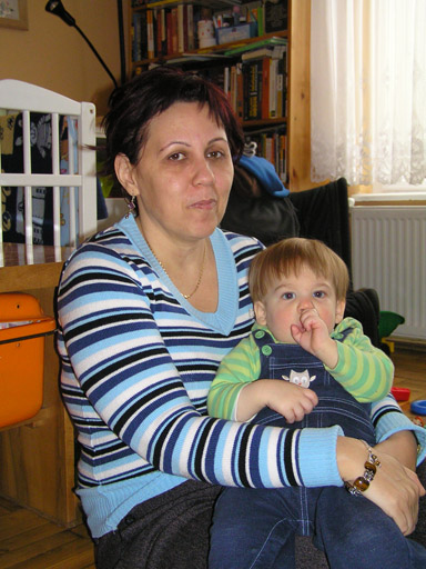 Levi Rita barátnőm ölében január 22-én, Levi alvás előtt volt, azért ez az álmos fej és az ujjszopás