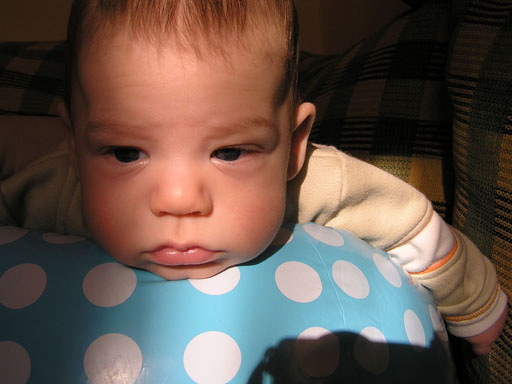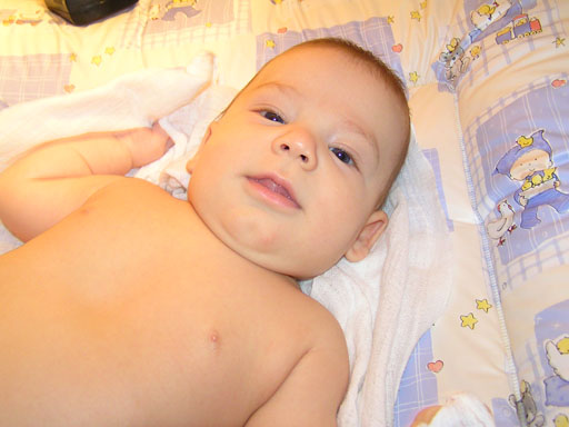 Evés után, mikor tele a pocak, és várjuk, hogy a pelus is tele legyen szoktunk beszélgetni. Azaz én beszélek hozzá és Ő is mondja a magáét babanyelven, közben mosolyog meg járnak a végtagjai föl-le. Nagyon jó kedélyű kisbaba, ha sír annak mindig oka van. Ahogy gagyarászik az meg zabálnivaló, olyan édes, ahogy brüüüühhhhzik, őaaaazik. Közben hol mosolyog, hol meg nagyon tudományos fejet vág a hangokhoz. A legújabb hogy közben kidugja a nyelvét is, közben persze folyik a nyála, a majdani fogzás előszeleként.