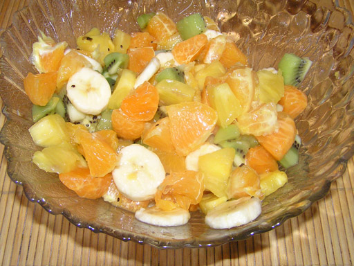 Télen kevesebb a gyümölcs, de azért van miből válogatni így is. Egy jó gyümölcssaláta a legrondább téli napot is feldobja. Lehetőleg friss gyümölcsökből készítem, nem konzervből. Érdemes több színű gyümölcsöt válogatni bele, így a látvány is szemet gyönyörködtető lesz, nem csak az íze. Hozzávalók: 2 nagy narancs, 4 mandarin, 1 kisebb ananász, 5 kivi, 1 banán, 1 citrom leve, fahéj. A narancsot és a mandarint meghámozzuk, gerezdekre szedjük és kisebb darabokra vágjuk. Az ananász is meghámozzuk, tetejét alját levágjuk, negyedbe vágjuk, kivágjuk a középső fás részt és darabokra vágjuk. A kiviket megmossuk és zöldség hámozóval meghámozzuk a héját, majd daraboljuk. A citrom levét kifacsarjuk és az összekevert salátába beleforgatjuk, fahéjjal ízesíthetjük még. A banánt csak tálalás előtt tesszük bele, hogy ne ázzon szét. Persze tehetünk még bele grapefruitot, gránát almát, almát, aszalt gyümölcsöket vagy mazsolát, amikhez csak kedvünk van. Tipp: A citromlé nem csak az íze miatt jó a saliba, hanem így a gyümölcsök se barnulnak meg.