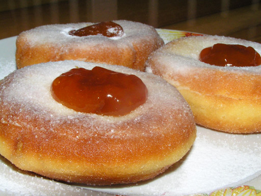 Persze már február első napján sütött nekünk addig rágtuk mindig a fülét. Olajban sül, de mégse zsíros és nagyon könnyű a tésztája. Az igazi fánk szalagos és baracklekvárral töltött és persze porcukorral meghintett.